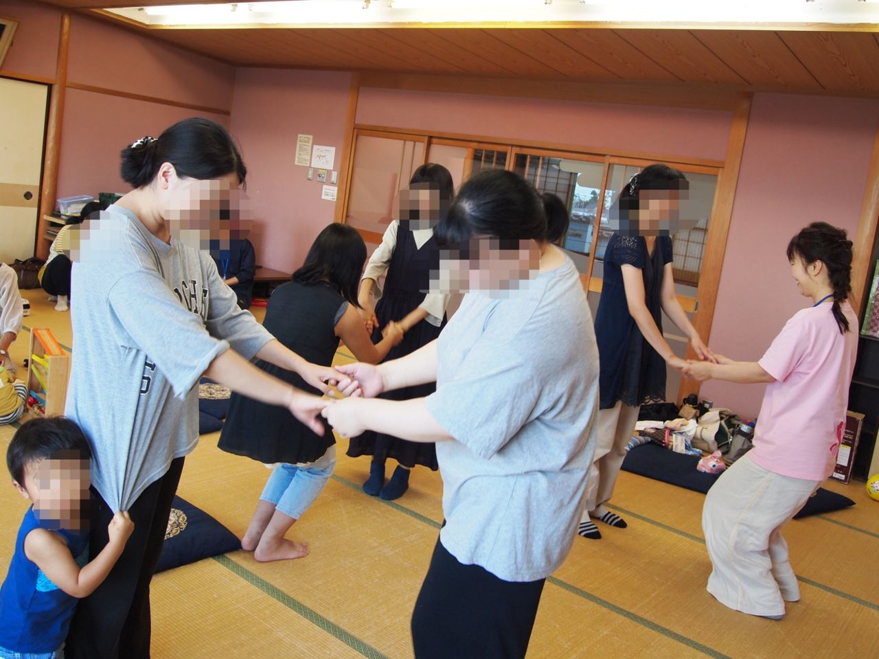 託児が用意された環境で、お母さん方が子ども達と一緒に和みに参加してくださいました。