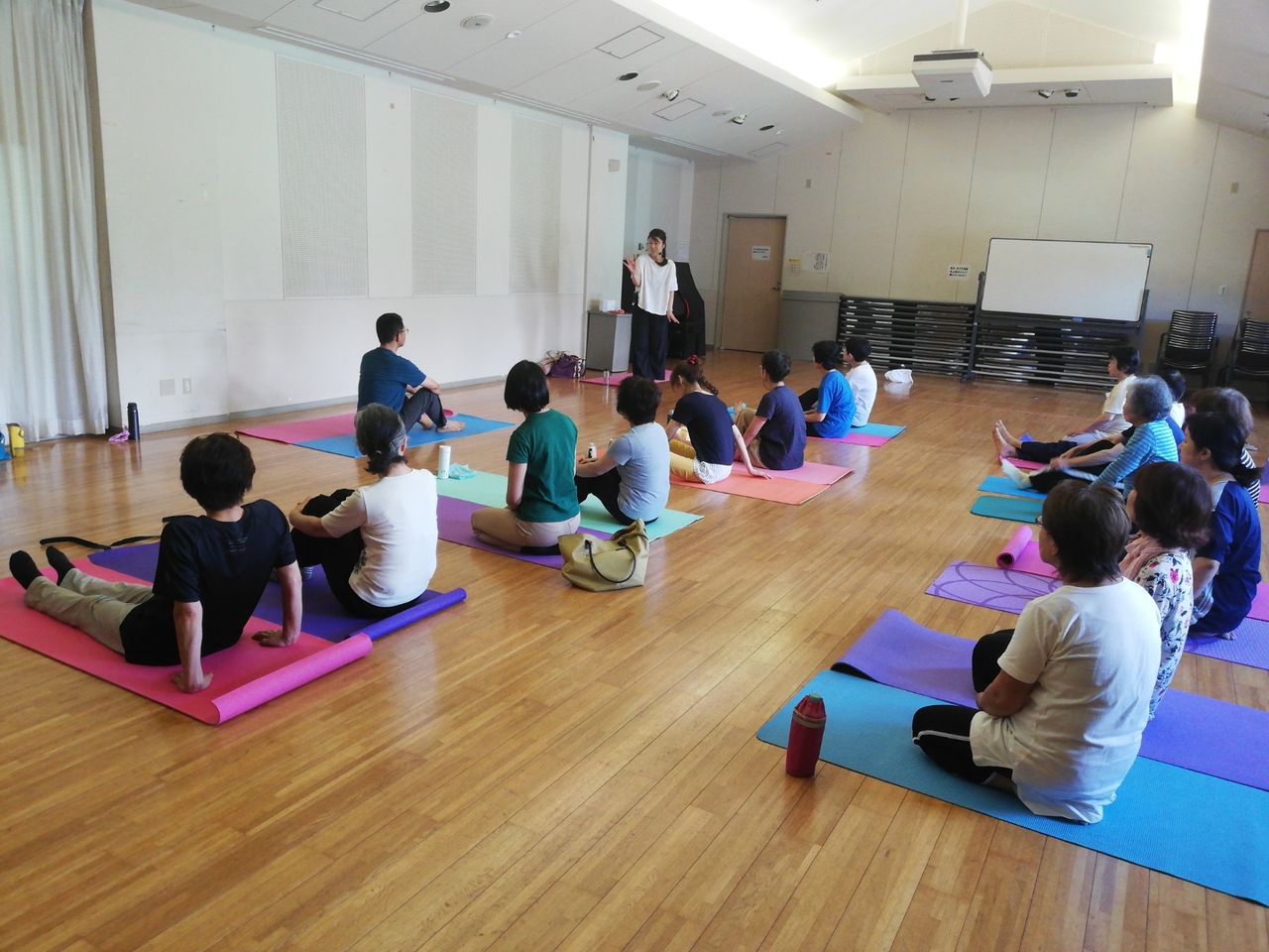 和みが終わった後の感想シェアの時間には、「(ゆかりさんのリードの)澄んだ声が心地よくて、雲の上にいるような気分でした」と。また、“ヨガ”と聞いて、帰ろうと思われた方も残って一緒に和みをしていただいたようで、「帰らないで、やってみてよかった。これならできる。」と、にこにこ顔でした