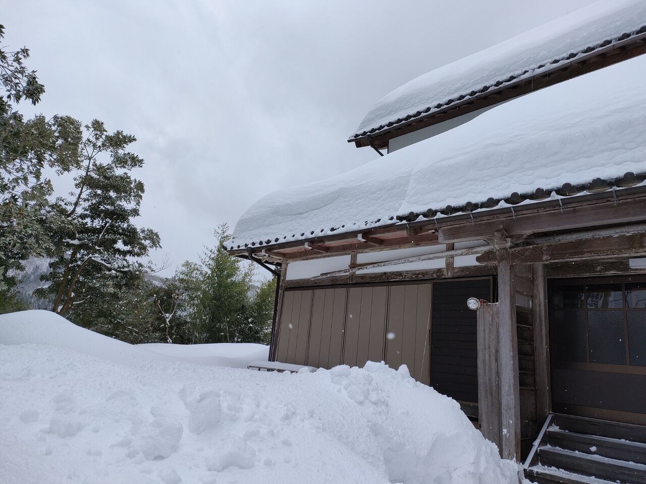 年末年始の寒波で大雪になり、雪どけでクタクタに…。除雪機などで、おおかたどけてもらい、機械でできない部分は手作業で。