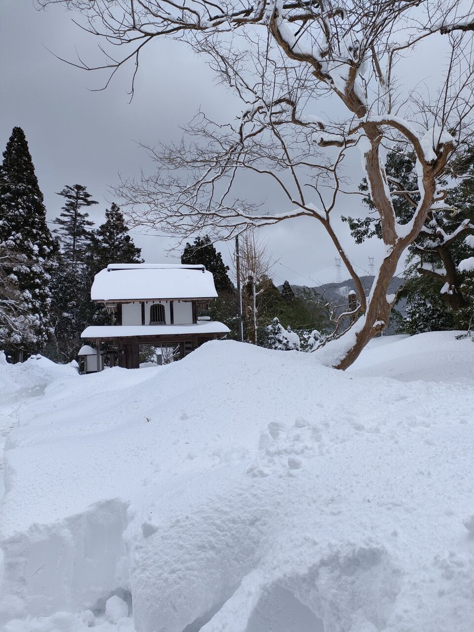"おてらでなごみ”に来ていただいたことがある方は、上の写真でこの山門と本堂の間の雪の量をわかっていただけるのではないでしょうか。